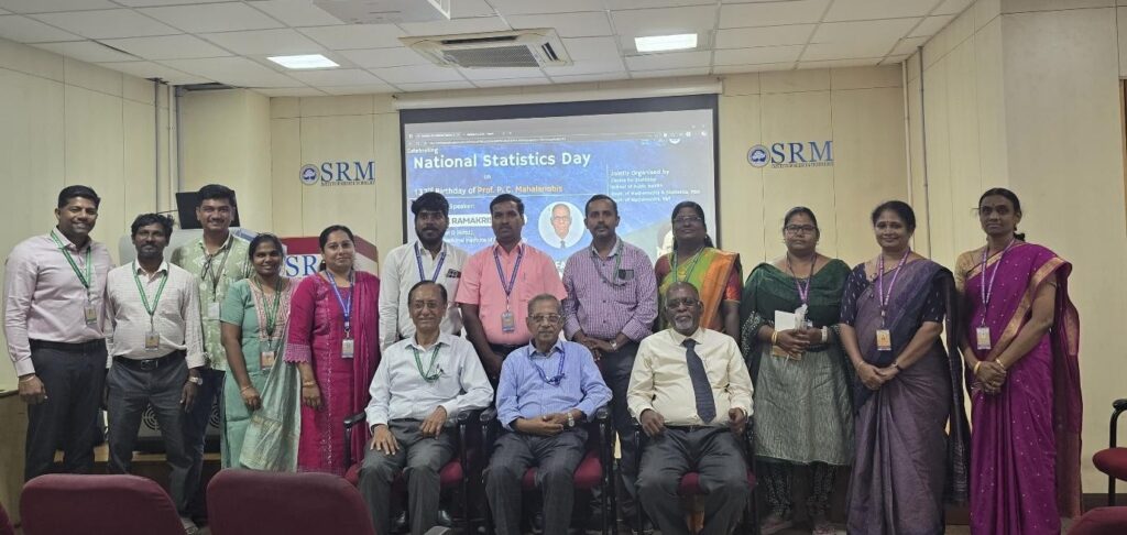 The National Statistics Day 2025 celebration at SRM Institute of Science and Technology (SRMIST) was organized on July 4th, which was a vibrant and intellectually enriching event, meticulously organized through the collaborative efforts of the Centre for Statistics, School of Public Health, Department of Mathematics and Statistics (FSH), and Department of Mathematics (E&T). The event brought together students, scholars, and faculty to celebrate the enduring impact of statistics and the vision of Prof. Mahalanobis.