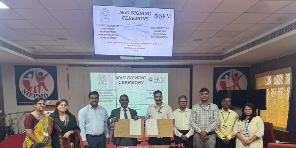 In a strategic step towards advancing integrative medical research, the Central Council for Research in Homoeopathy (CCRH), under the Ministry of Ayush, Government of India, has signed a Memorandum of Understanding (MoU) with the Interdisciplinary Institute of Indian System of Medicine & Homoeopathy (IIISM), operating under the Directorate of Research at SRM Institute of Science and Technology (SRMIST).