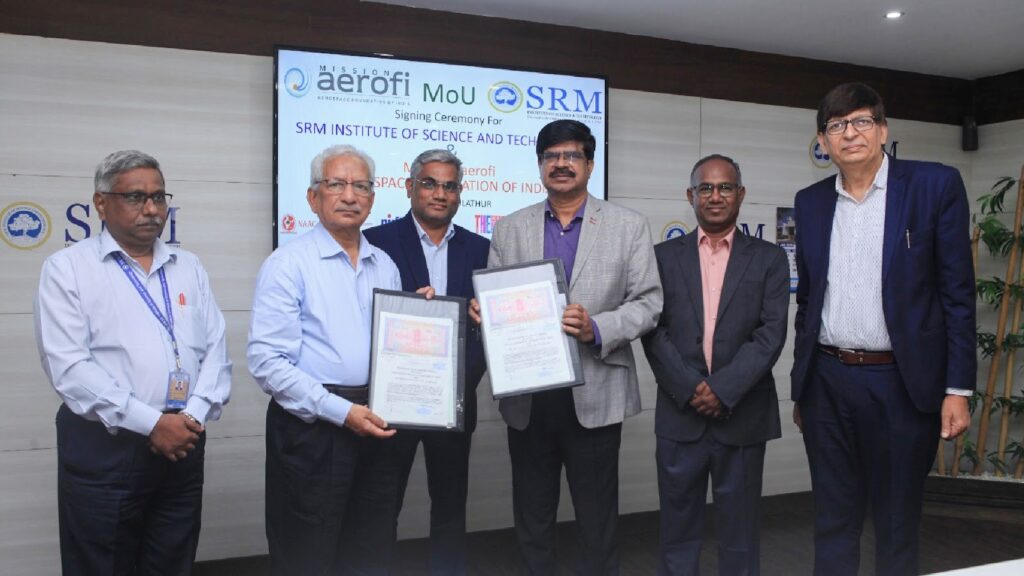 SRM Institute of Science and Technology (SRMIST-KTR), Kattankulathur, signed a Memorandum of Understanding (MoU) with Mission Aerofi, Bangalore, on June 9, 2025, marking a strategic alliance aimed at enhancing research, innovation, and industry-academia collaboration. The ceremony was held at Dr. Venkataraman Ramakrishnan Hall, 15th Floor – University Building, SRMIST-KTR campus.