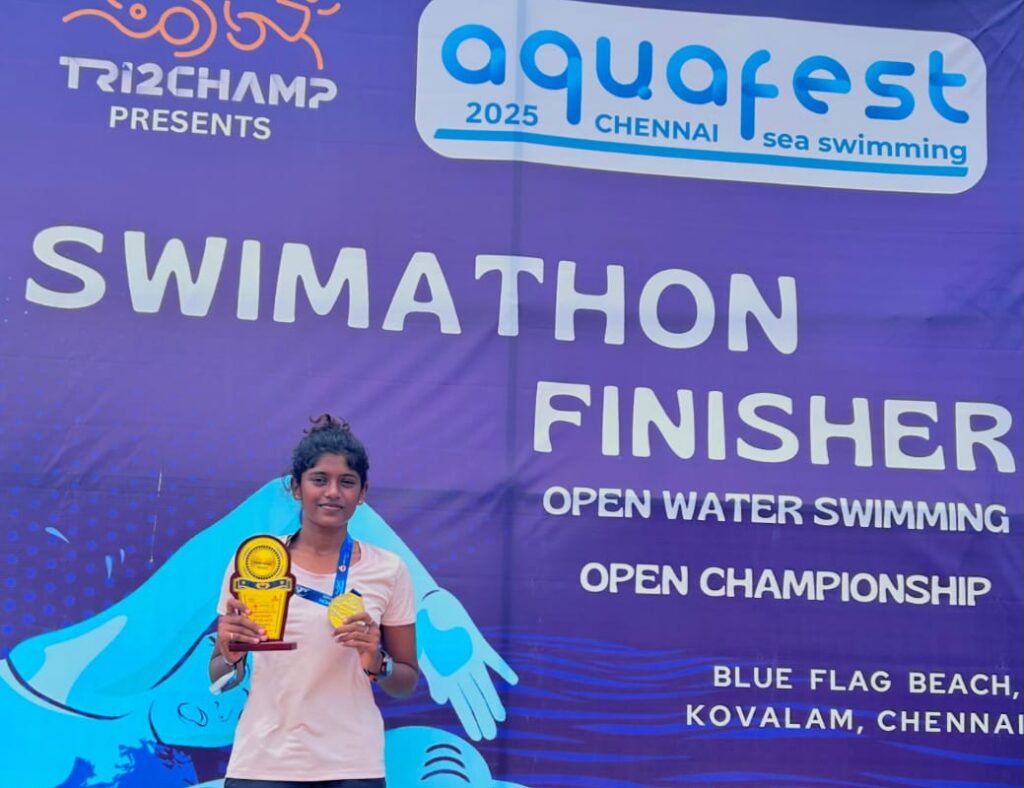 Competing in the Under-18 – 5 km open water swim category, Ms. Moana Sri demonstrated remarkable endurance, focus, and resilience in the challenging open-sea conditions. Her efforts were rewarded with a Silver Medal, marking a significant milestone in her budding athletic journey.