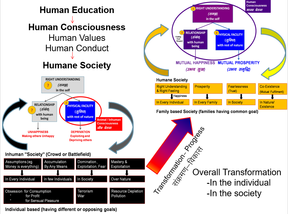 Education should help an individual to develop clarity on understanding (what to do?) & learning skills (how to do?) and practicing the understanding & skills will lead towards the fulfillment of human purpose.